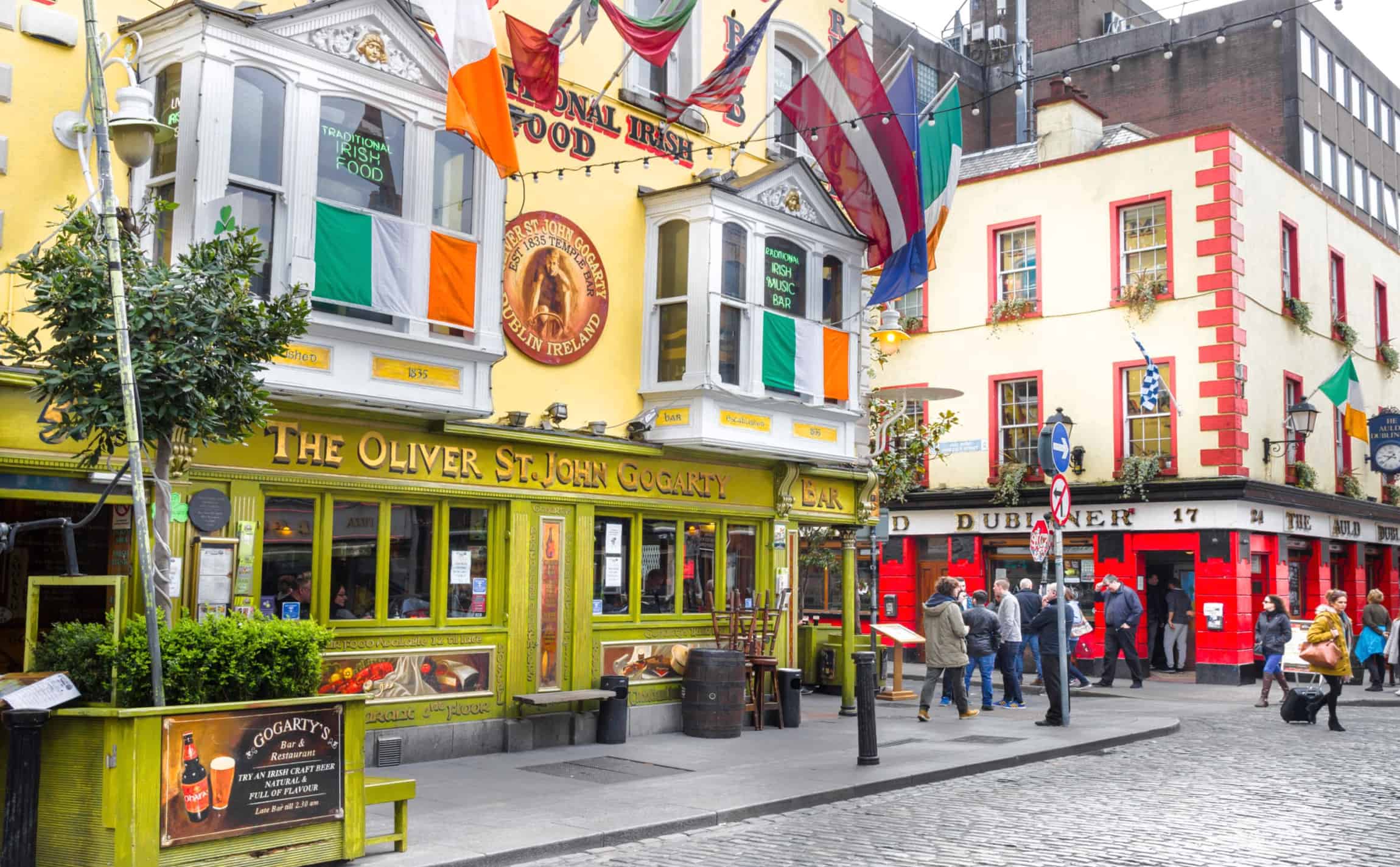 Le quartier tire son nom de Sir William Temple, un célèbre politicien et philosophe du XVIIe siècle. Au fil du temps, Temple Bar est devenu le cœur de la scène artistique et culturelle de Dublin. Il abrite des pubs traditionnels, des restaurants, des galeries d’art, des boutiques vintage et des théâtres.