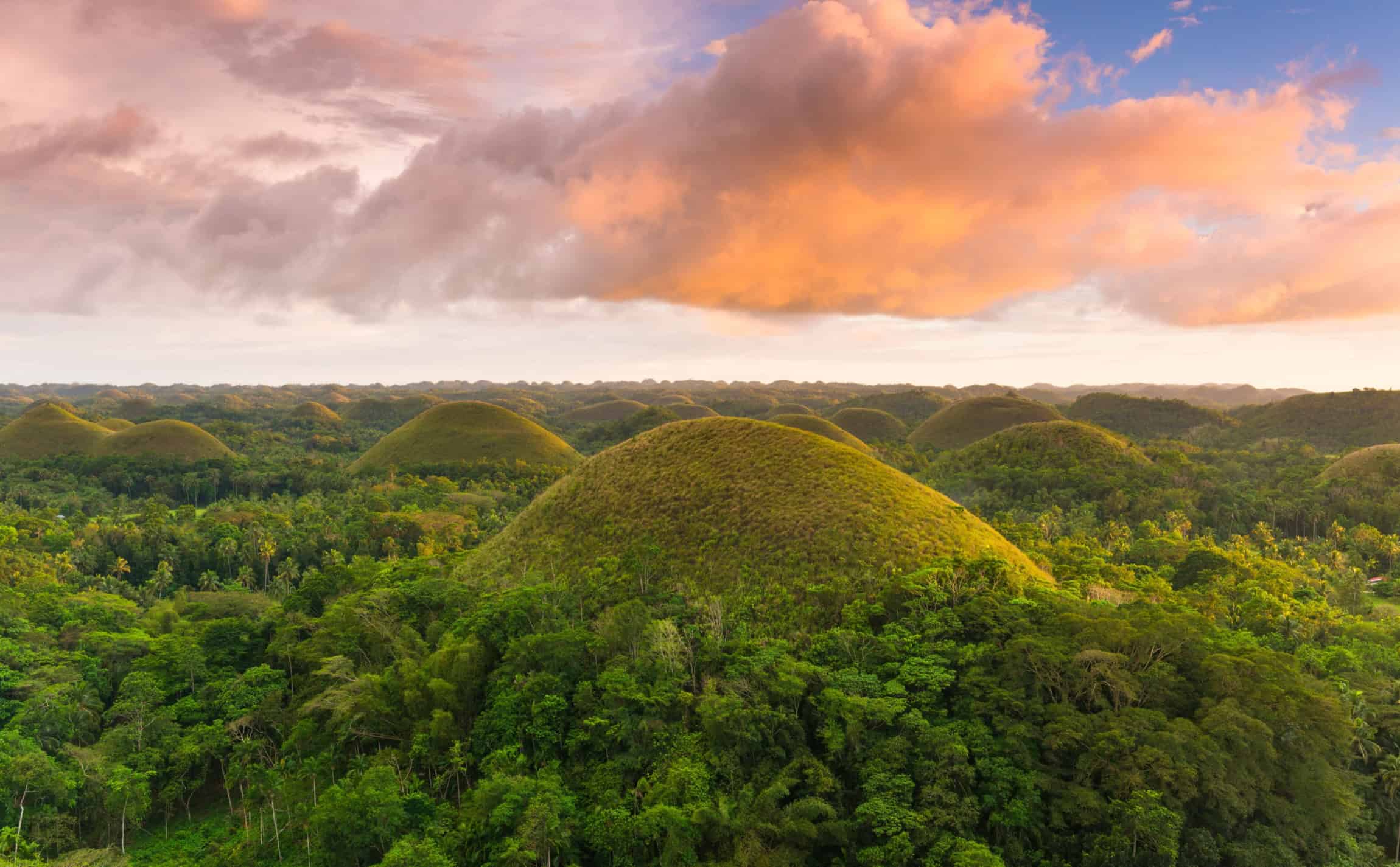 Mais pourquoi les appelle-t-on « montagnes de chocolat » ? C’est tout simple : durant la saison sèche, entre décembre et mai, la végétation qui recouvre ces collines perd son vert éclatant et prend une teinte marron, donnant l’impression de se trouver face à une forêt de chocolats géants !