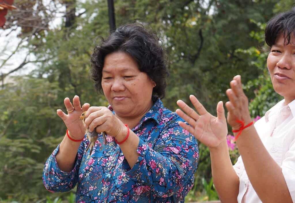 Nous avons par contre découvert une étrange coutume, qui consiste à acheter un oiseau en cage, le garder en main pour prononcer sa prière et le relâcher… pour qu’il se fasse re-capturer le lendemain et re-relâcher ensuite : un boucle sans fin !